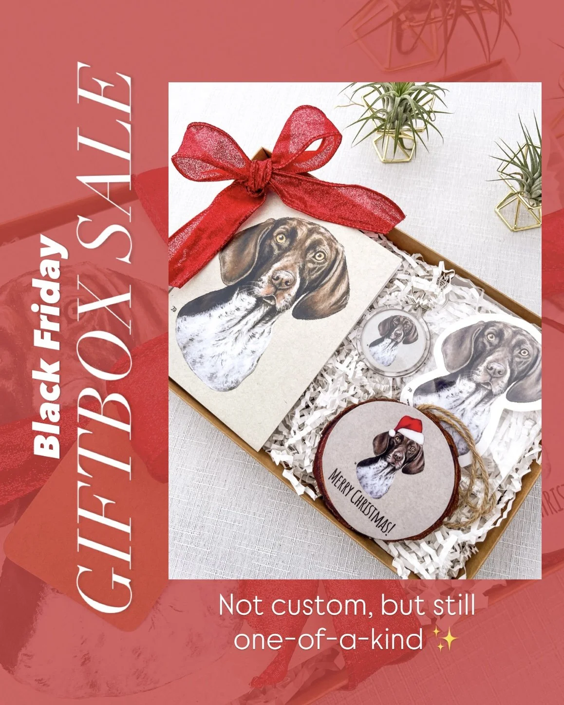 Breed-specific readymade giftboxes are the perfect gift for pet lovers and give you a fun, affordable way to gift my designs without the custom price or wait!